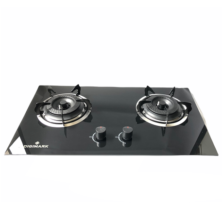 Upgrade your kitchen with this modern 2-burner gas stove, designed with a sleek black glass surface and a compact 76.5 cm × 45 cm × 18.5 cm frame — perfect for any home.